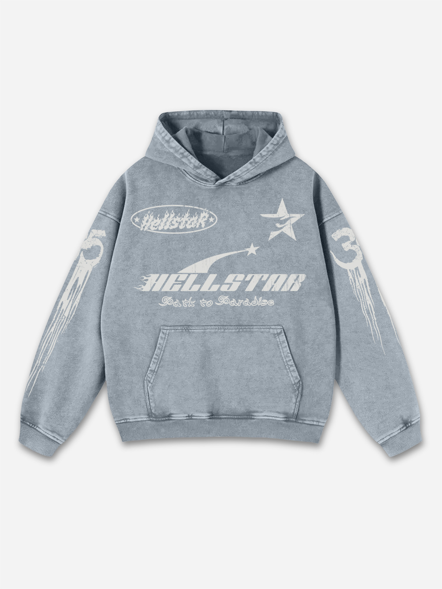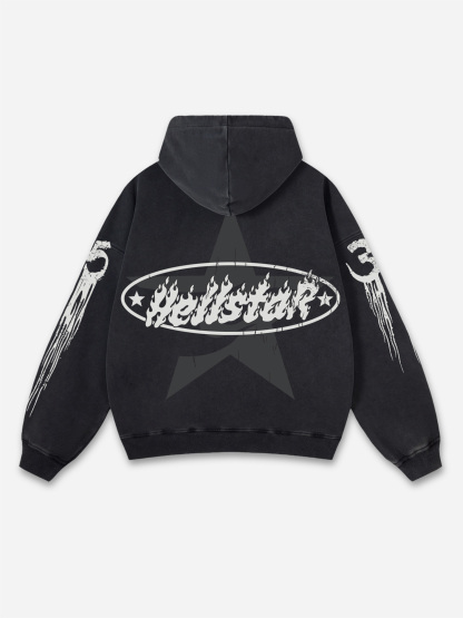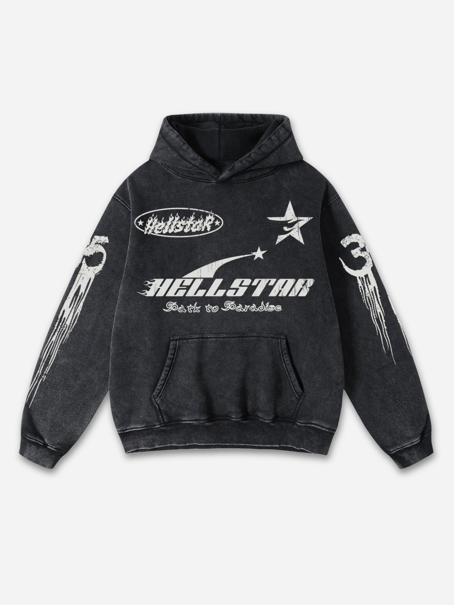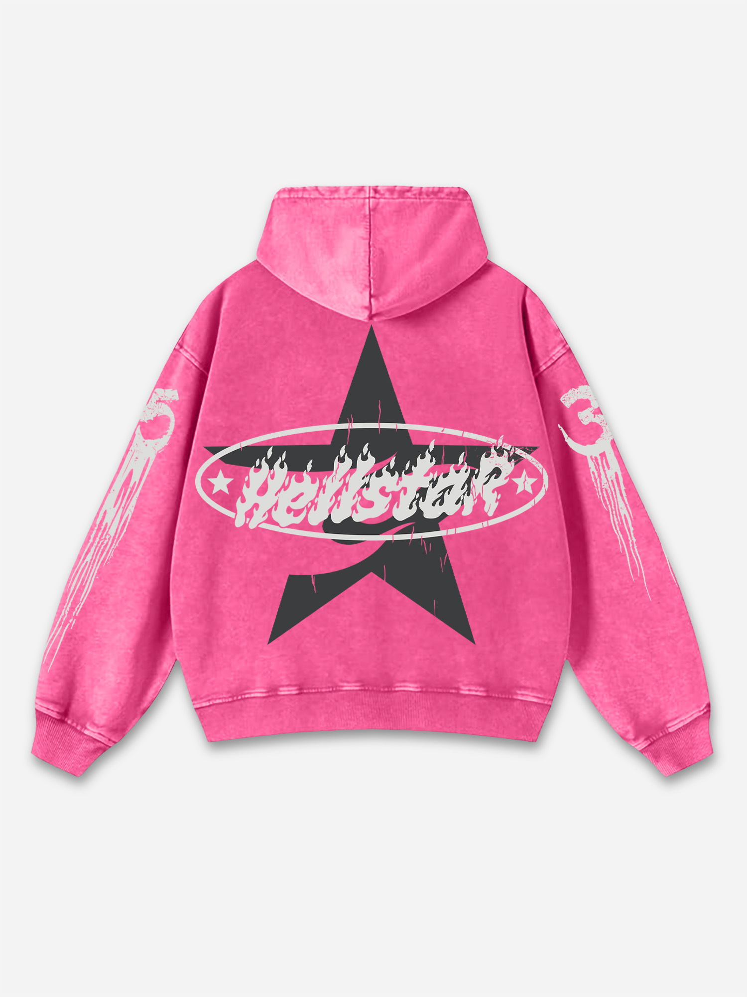 Vintage Hell Star Graphic Acid Washed Oversized Hoodie