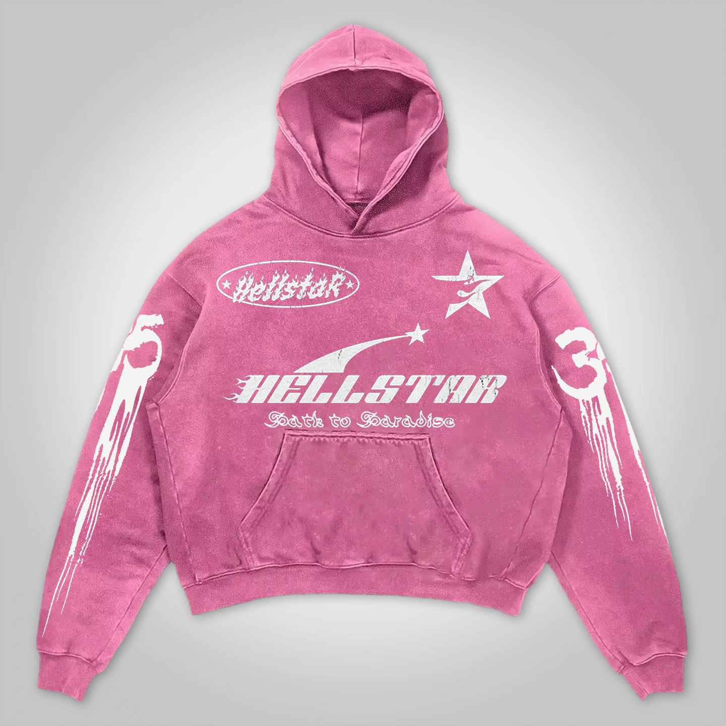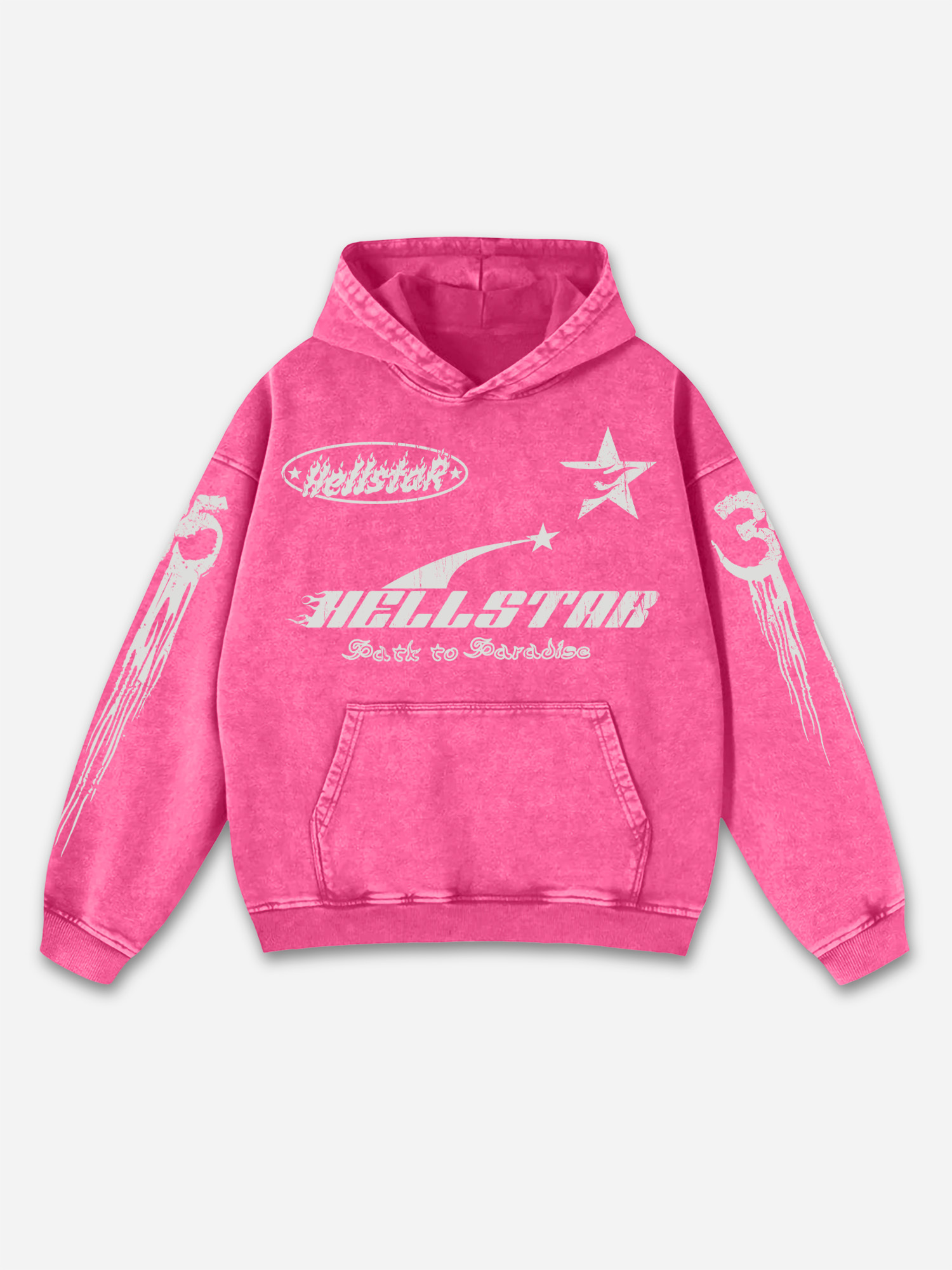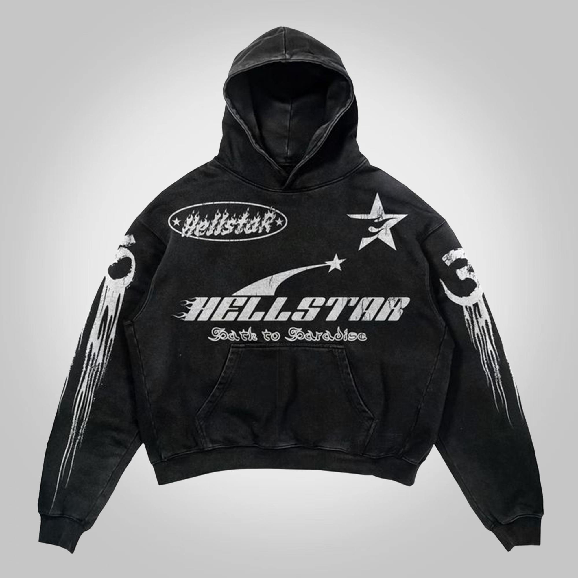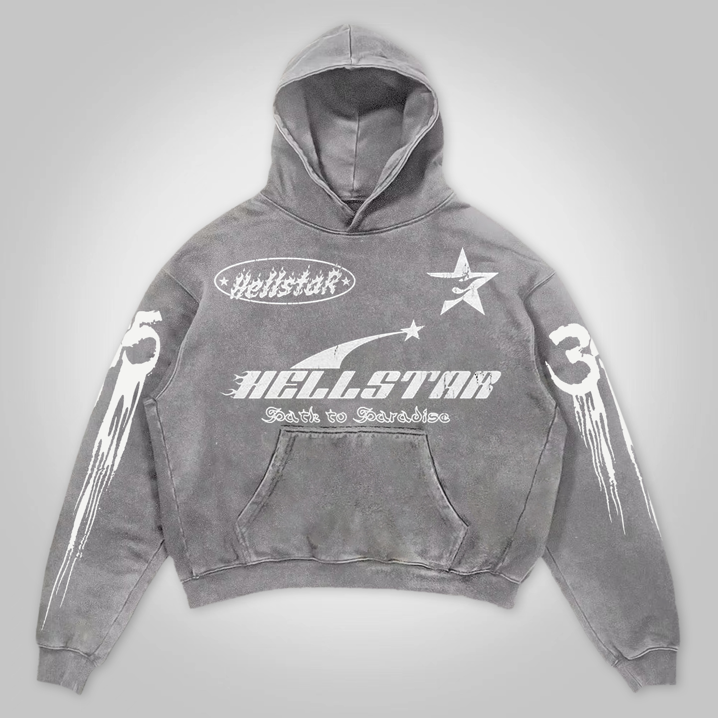 Vintage Hell Star Graphic Acid Washed Oversized Hoodie