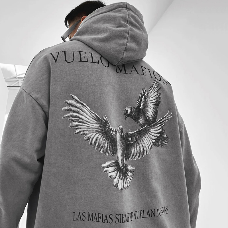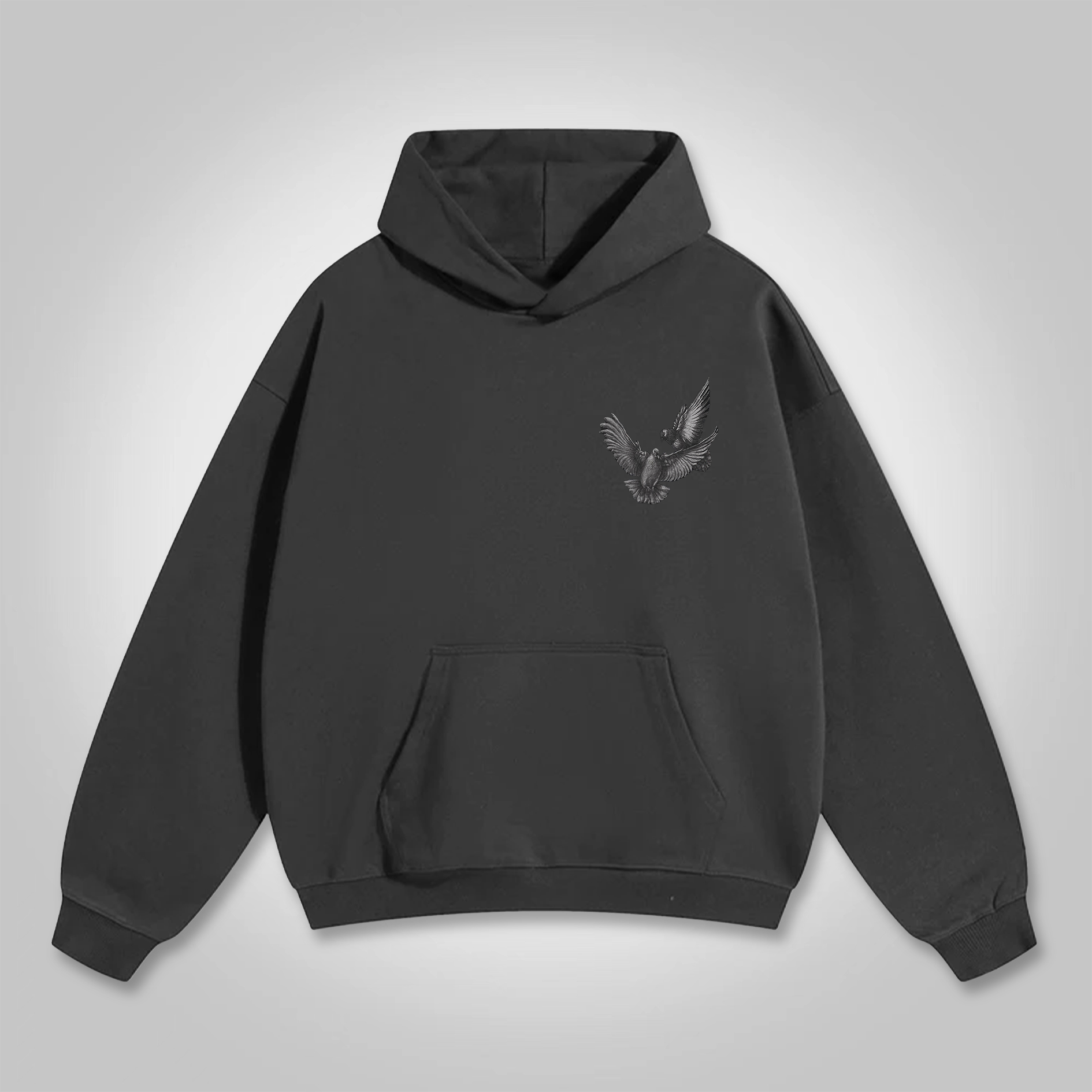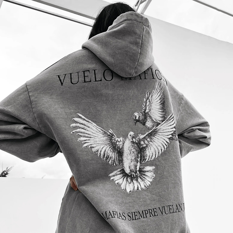 Oversize Vintage Peace Dove Graphic Print Hoodie