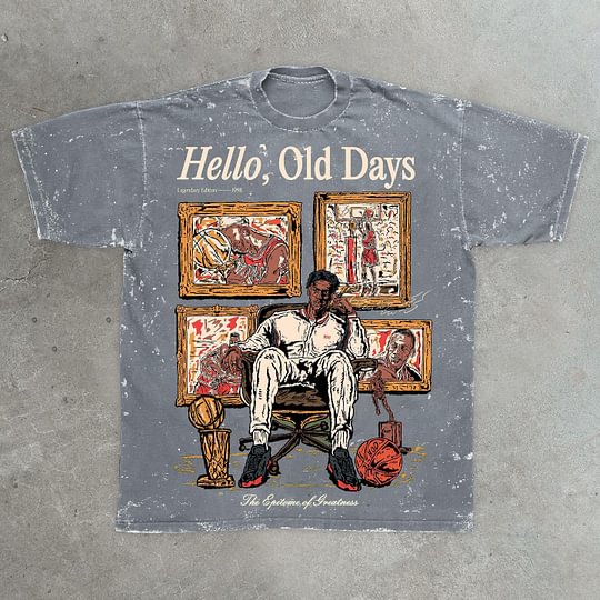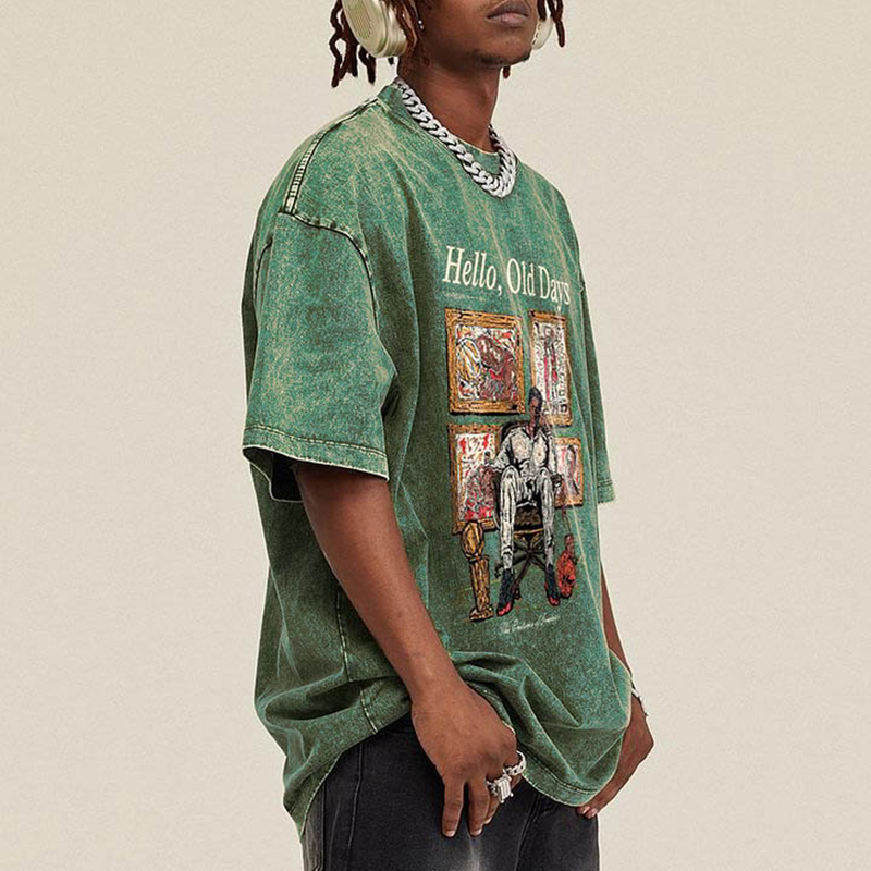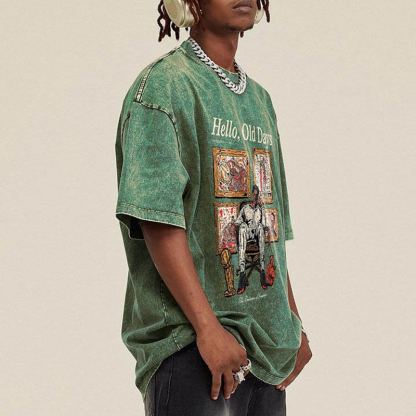 Retro Fashion Old Times Graphic Acid Washed Short Sleeve T-Shirt