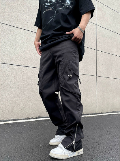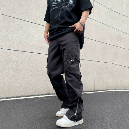 Men's Street Hip Hop Zipper Decoration Cargo Pants