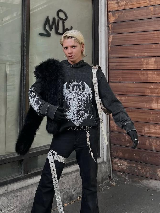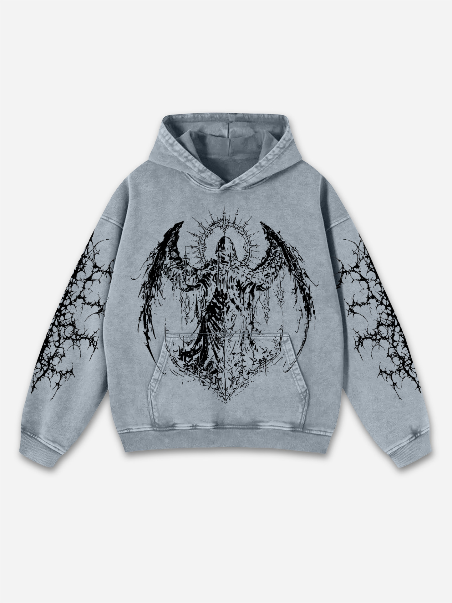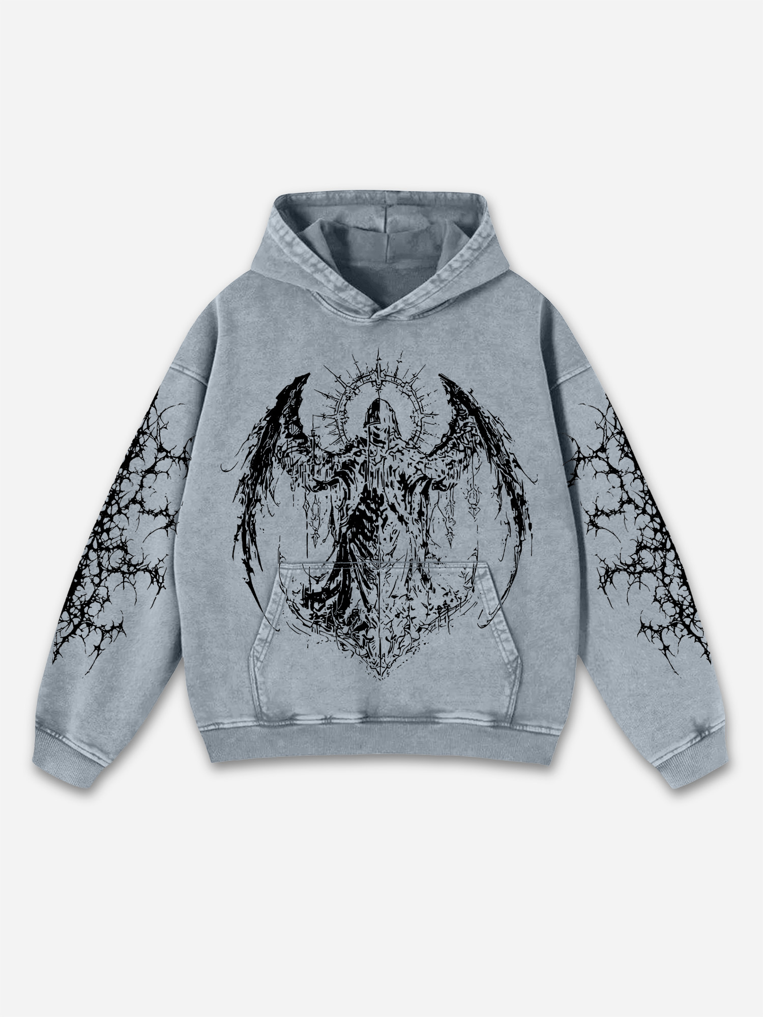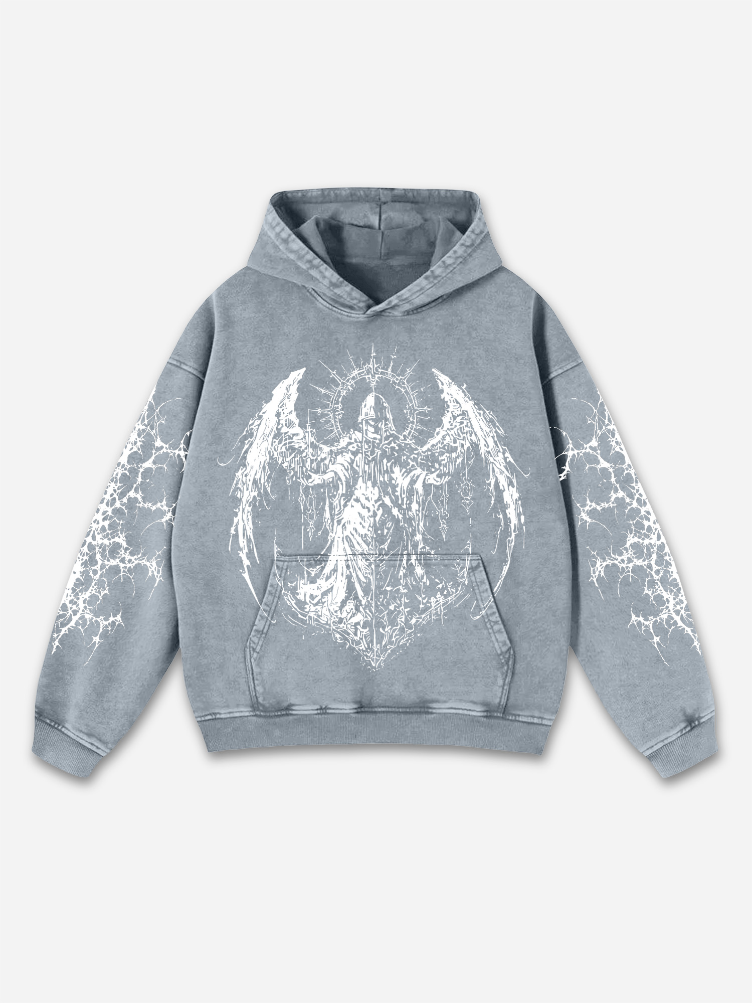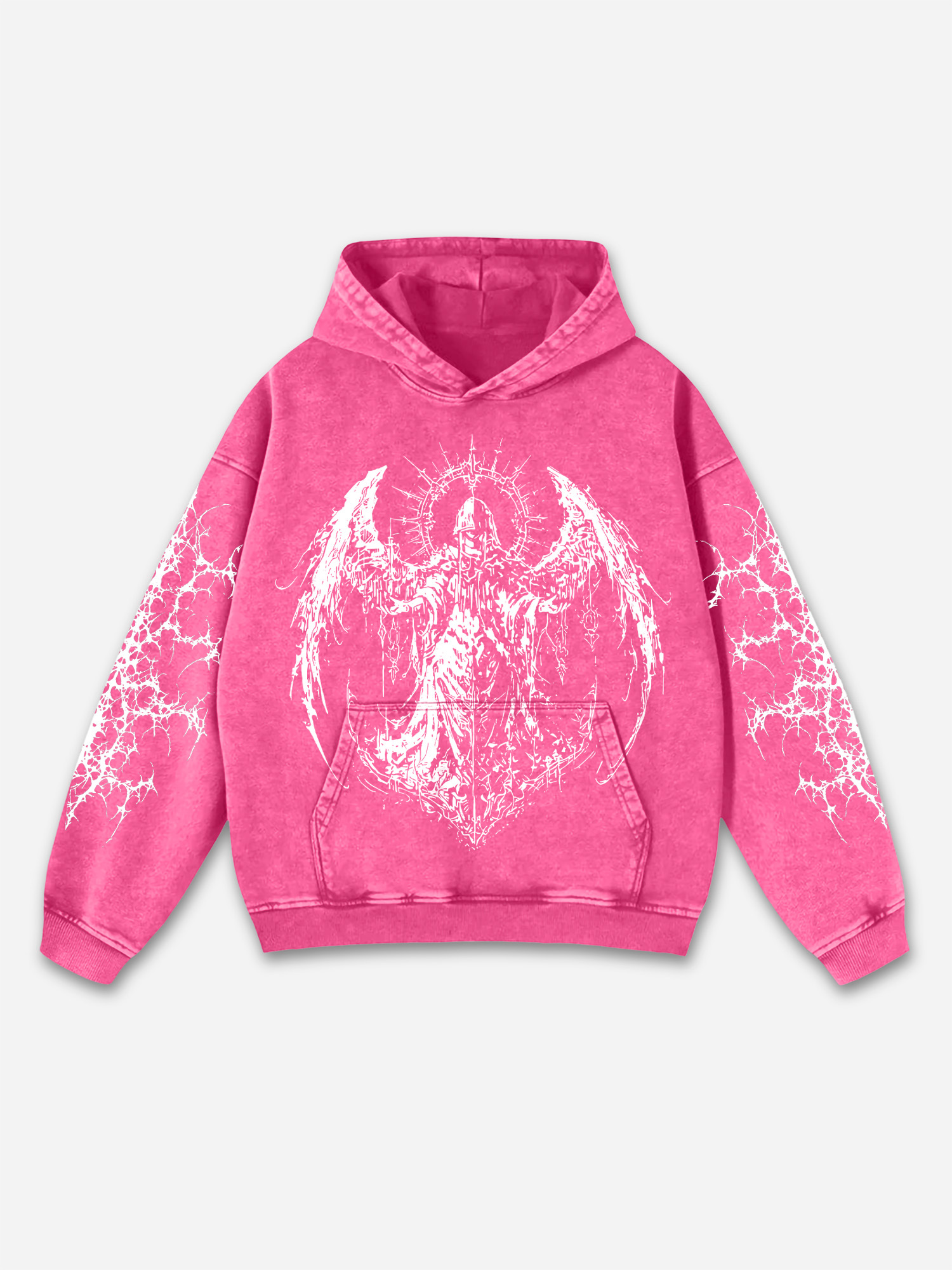 Vintage Pattern Print Acid Washed Oversized Hoodie