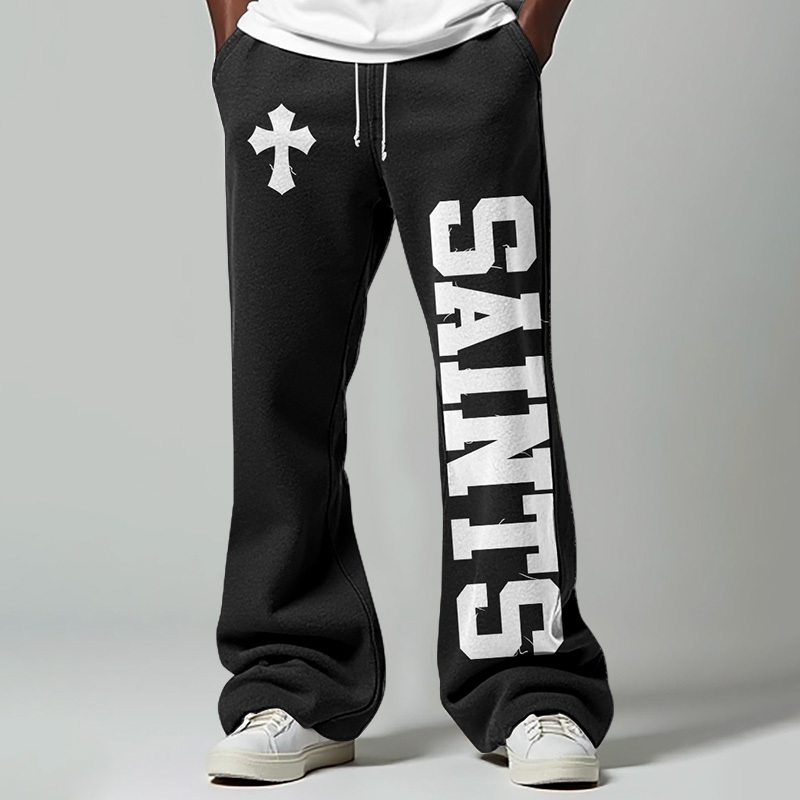 Vintage Saint Print Casual Flared Sweatpants
