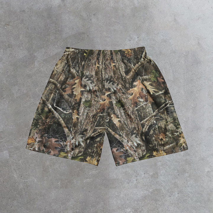 Vintage Stylish Camo Trunk Graphic Casual Street Mesh Shorts