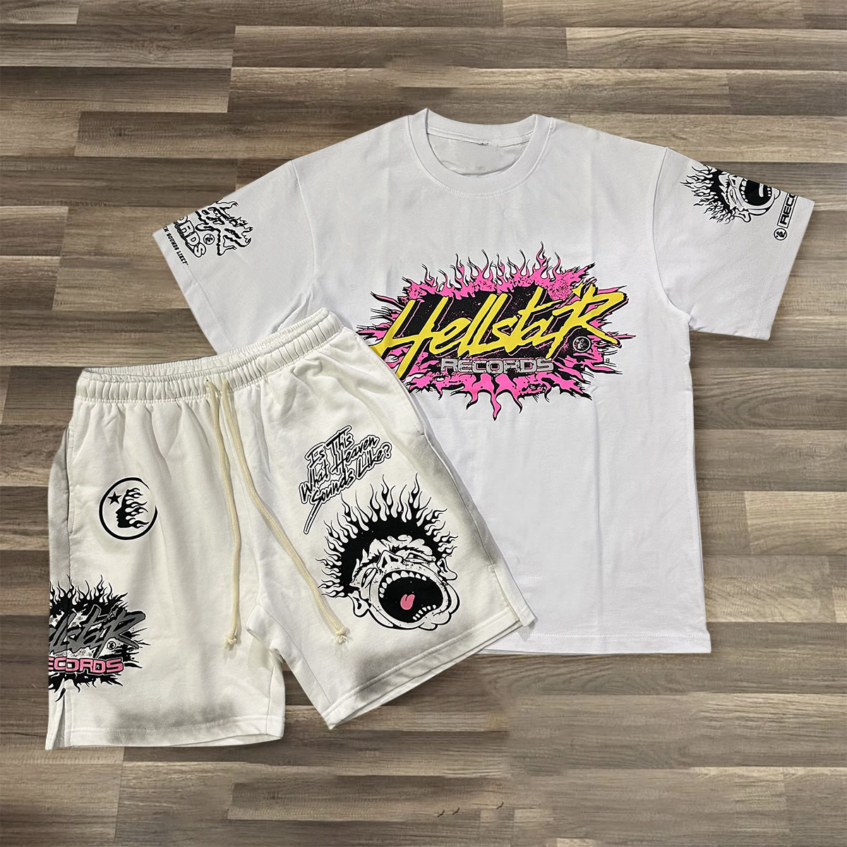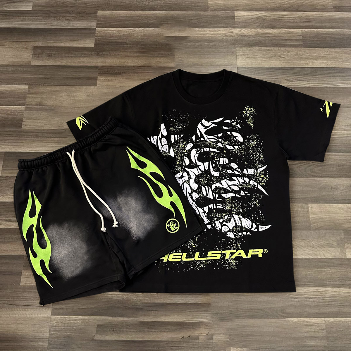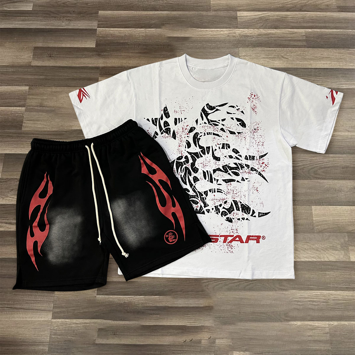 Street Hellstar Graphic Mesh Shorts T-Shirt Two-Piece Set