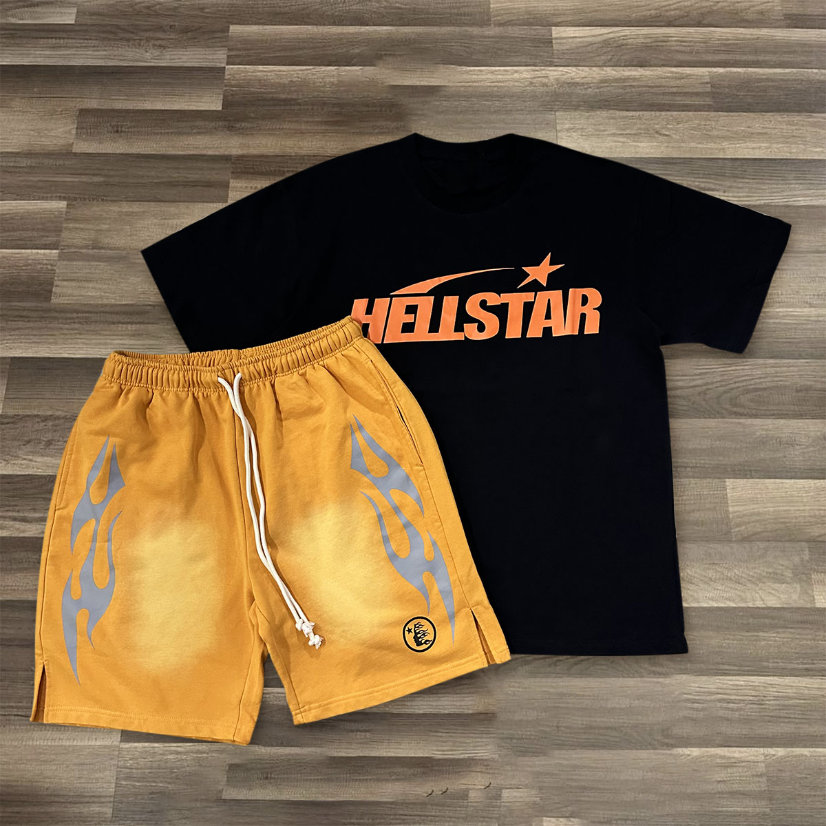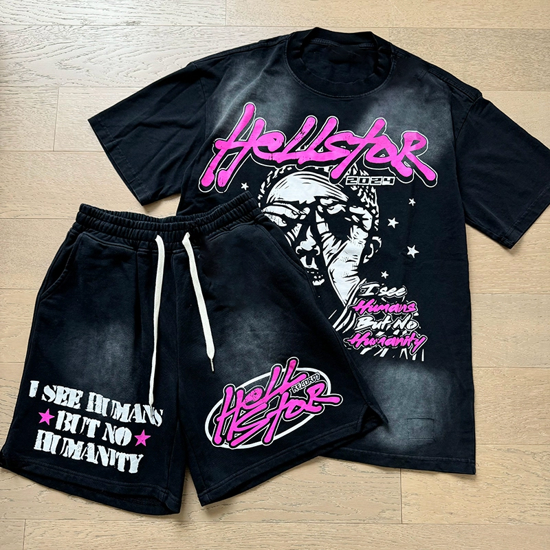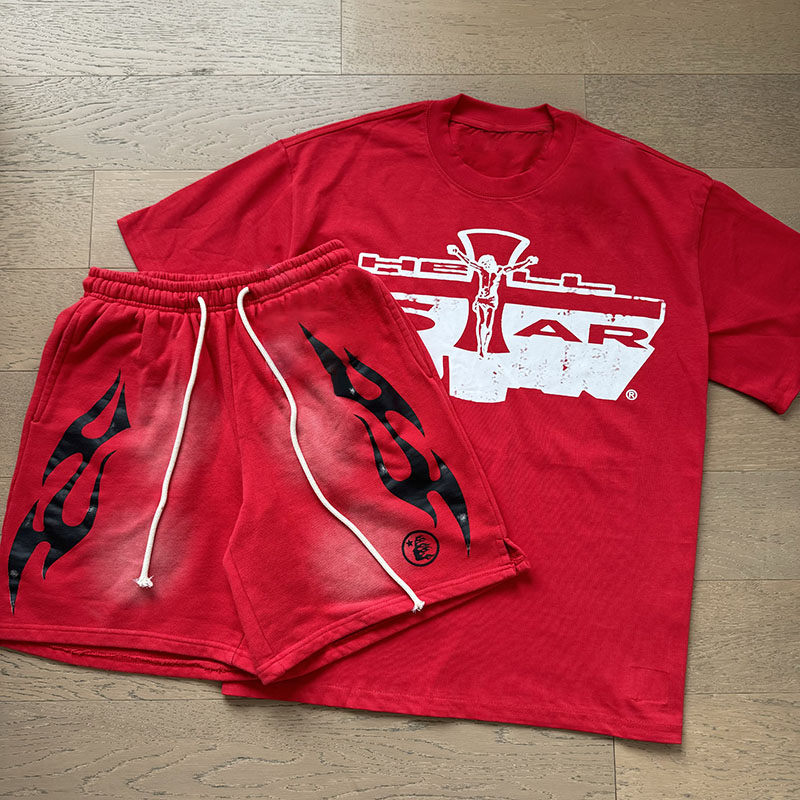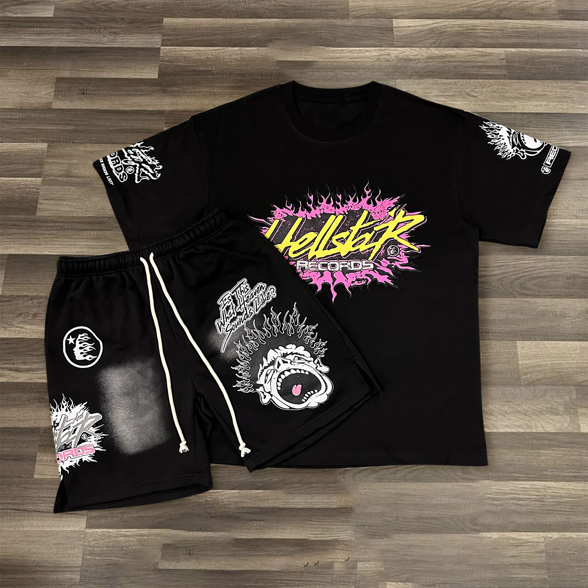 Street Hellstar Graphic Mesh Shorts T-Shirt Two-Piece Set