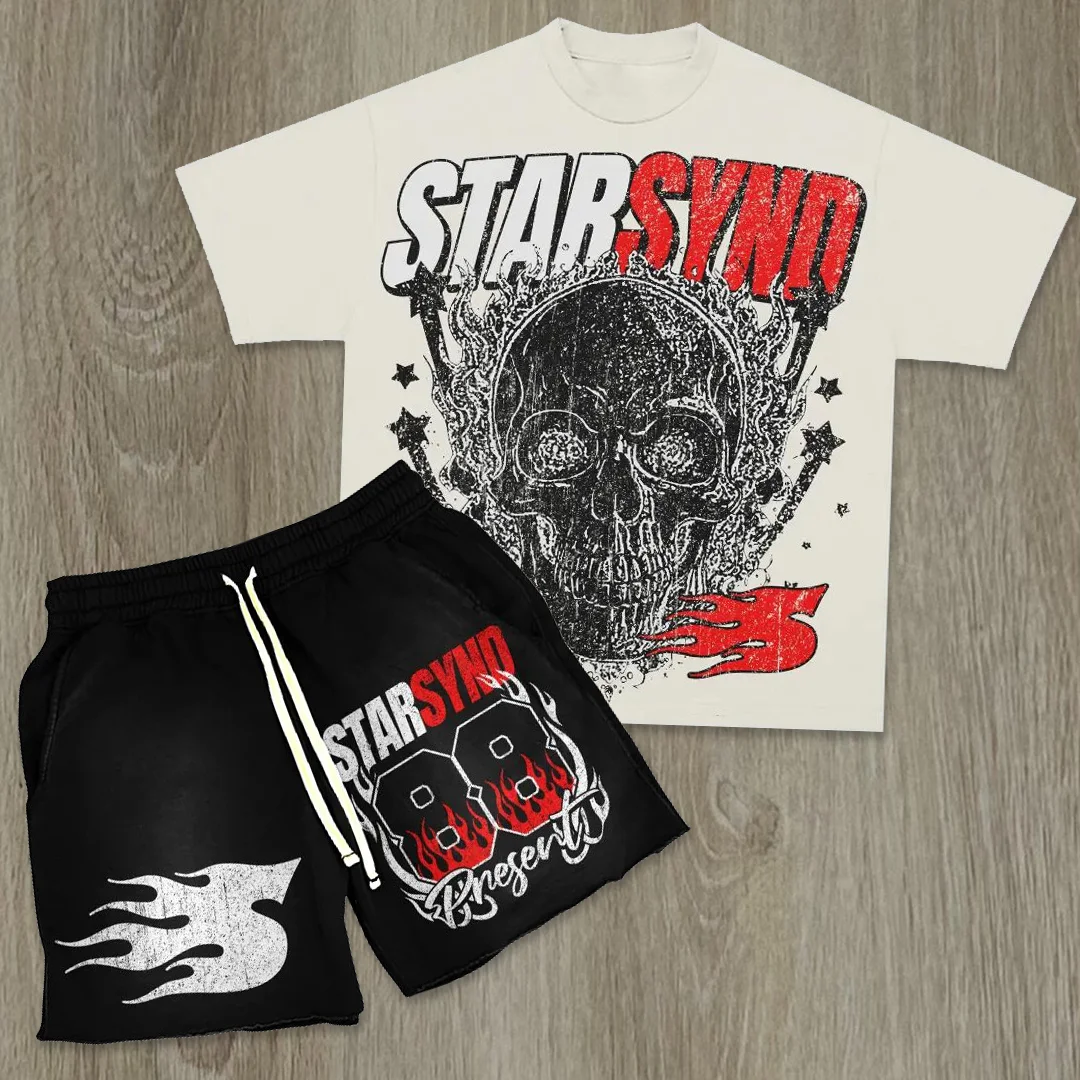Skull Casual Street T-Shirt Shorts Two-Piece Set