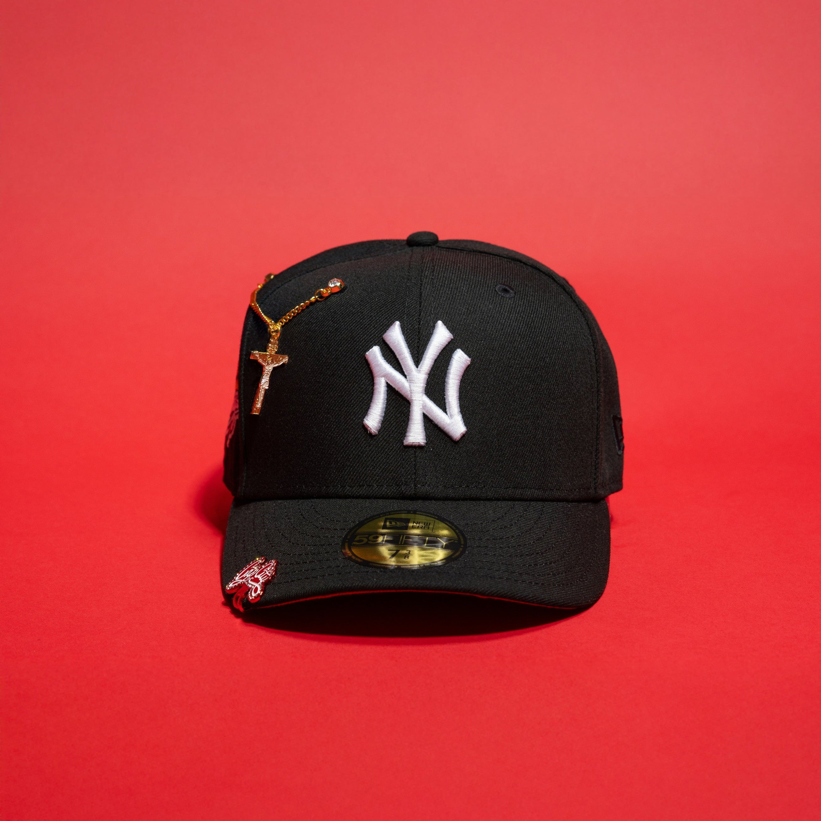 NEW ERA EXCLUSIVE 59FIFTY CHROME/ BLACK NEW YORK YANKEES W/ PINK HEART + 1999 WORLD SERIES SIDE PATCH