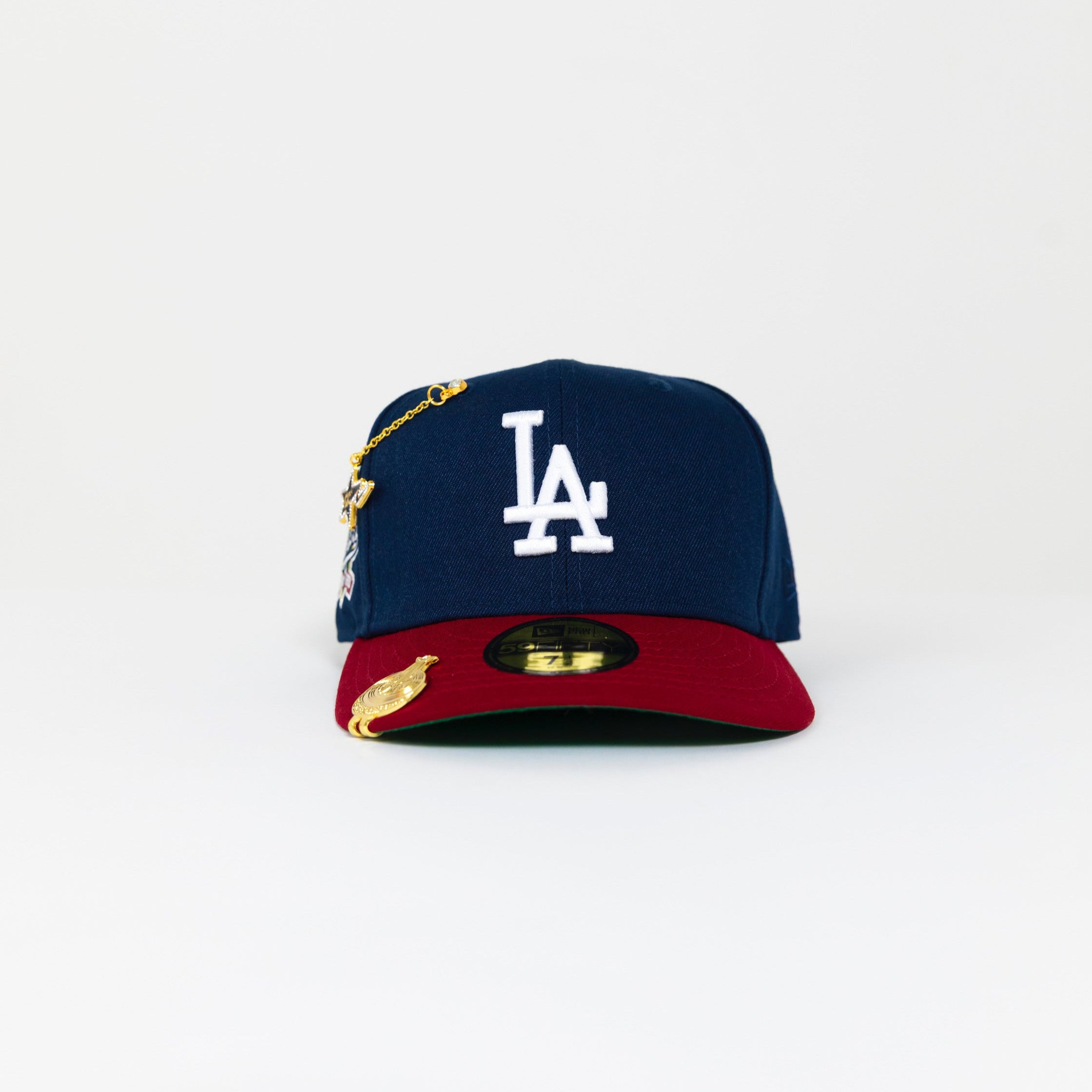 NEW ERA EXCLUSIVE 59FIFTY NAVY/ BURGUNDY LOS ANGELES DODGERS W/ 100TH ANNIVERSARY SIDE PATCH
