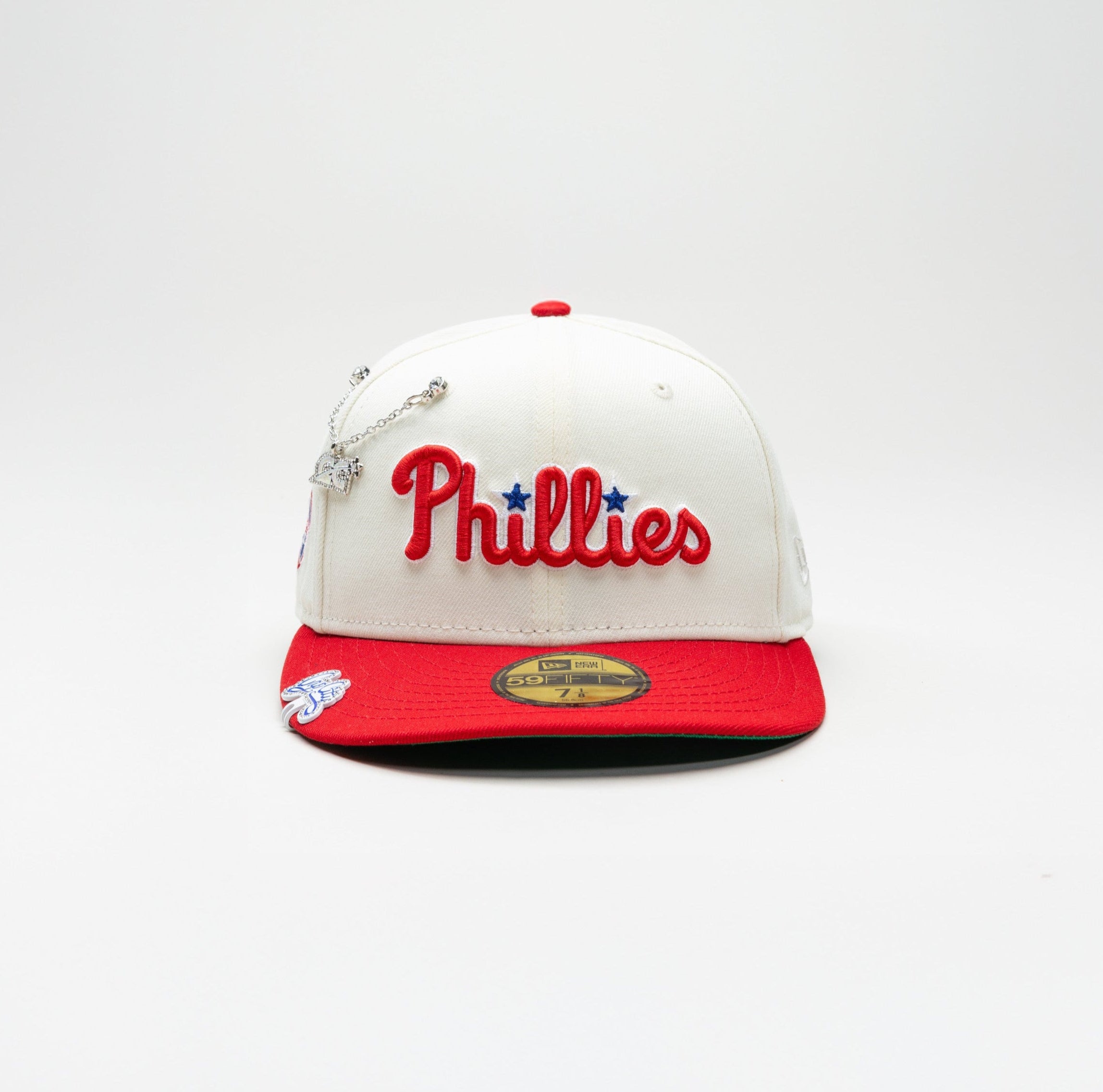 NEW ERA EXCLUSIVE 59FIFTY CHROME/ RED PHILADELPHIA PHILLIES W/ "PHILLIES" LOGO SIDE PATCH