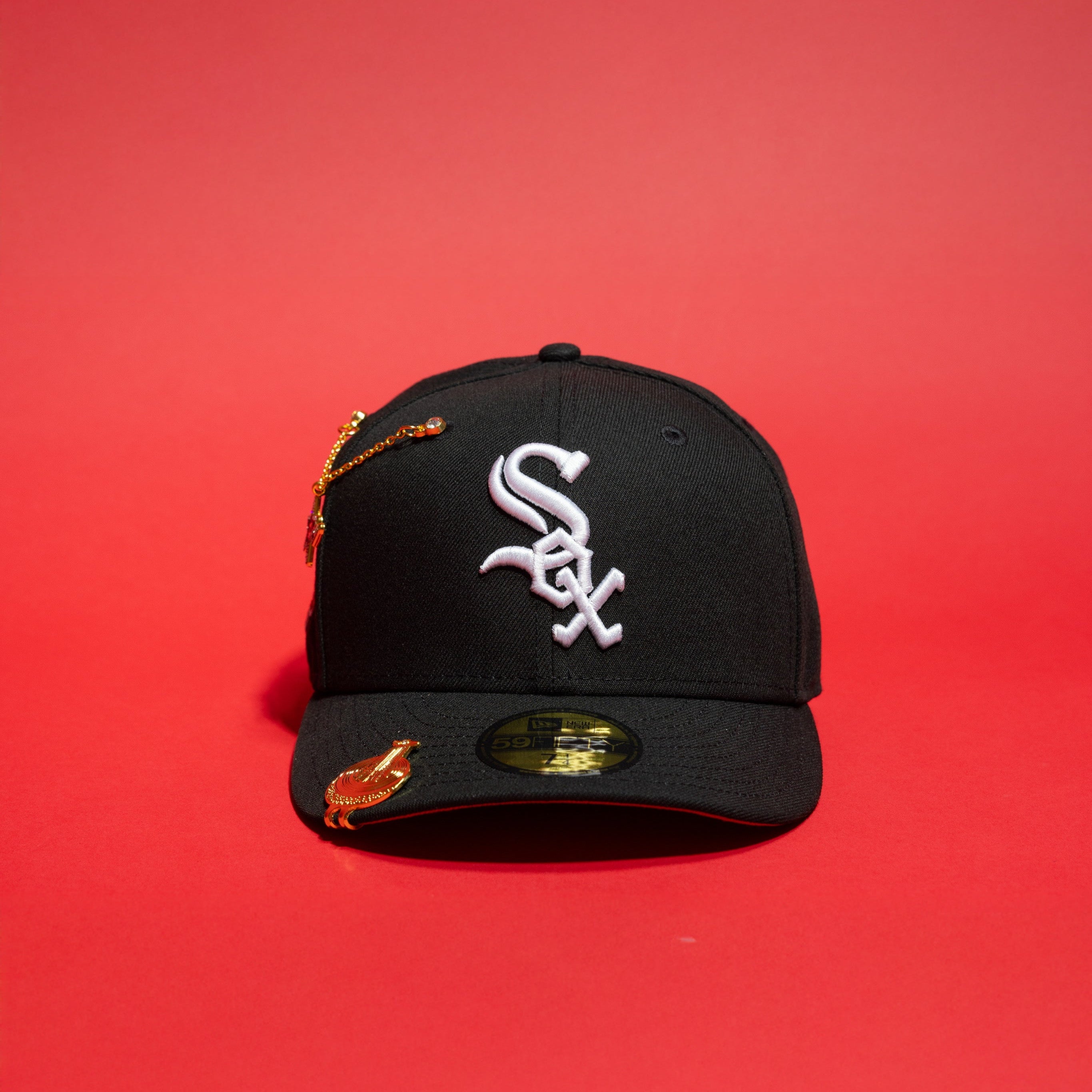 NEW ERA EXCLUSIVE 59FIFTY BLACK CHICAGO WHITE SOX W/ 100TH SEASON SIDE PATCH