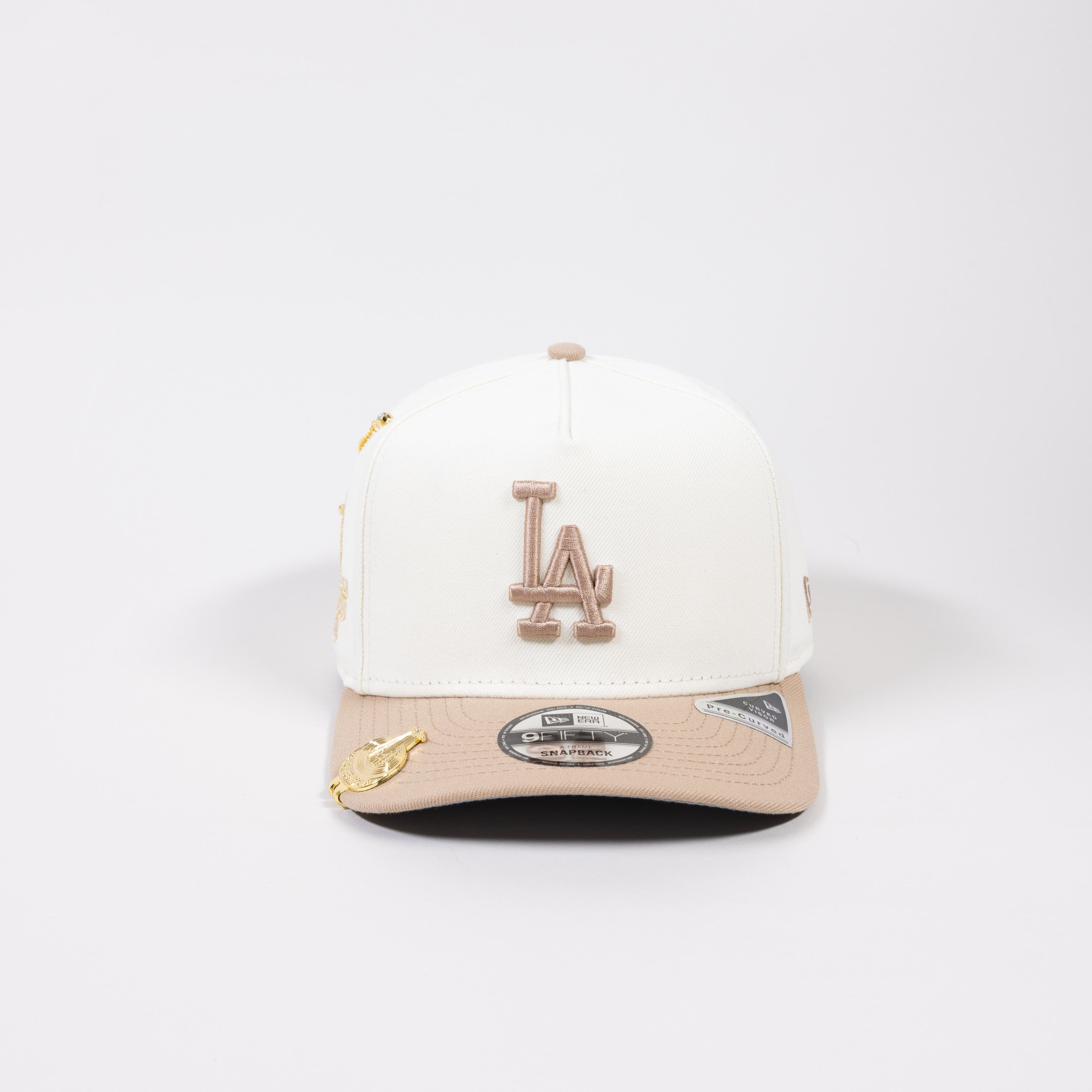 NEW ERA EXCLUSIVE 9FIFTY A-FRAME CHROME/ LIGHT KHAKI LOS ANGELES DODGERS SNAPBACK W/ 2024 WORLD SERIES CHAMPIONS SIDE PATCH