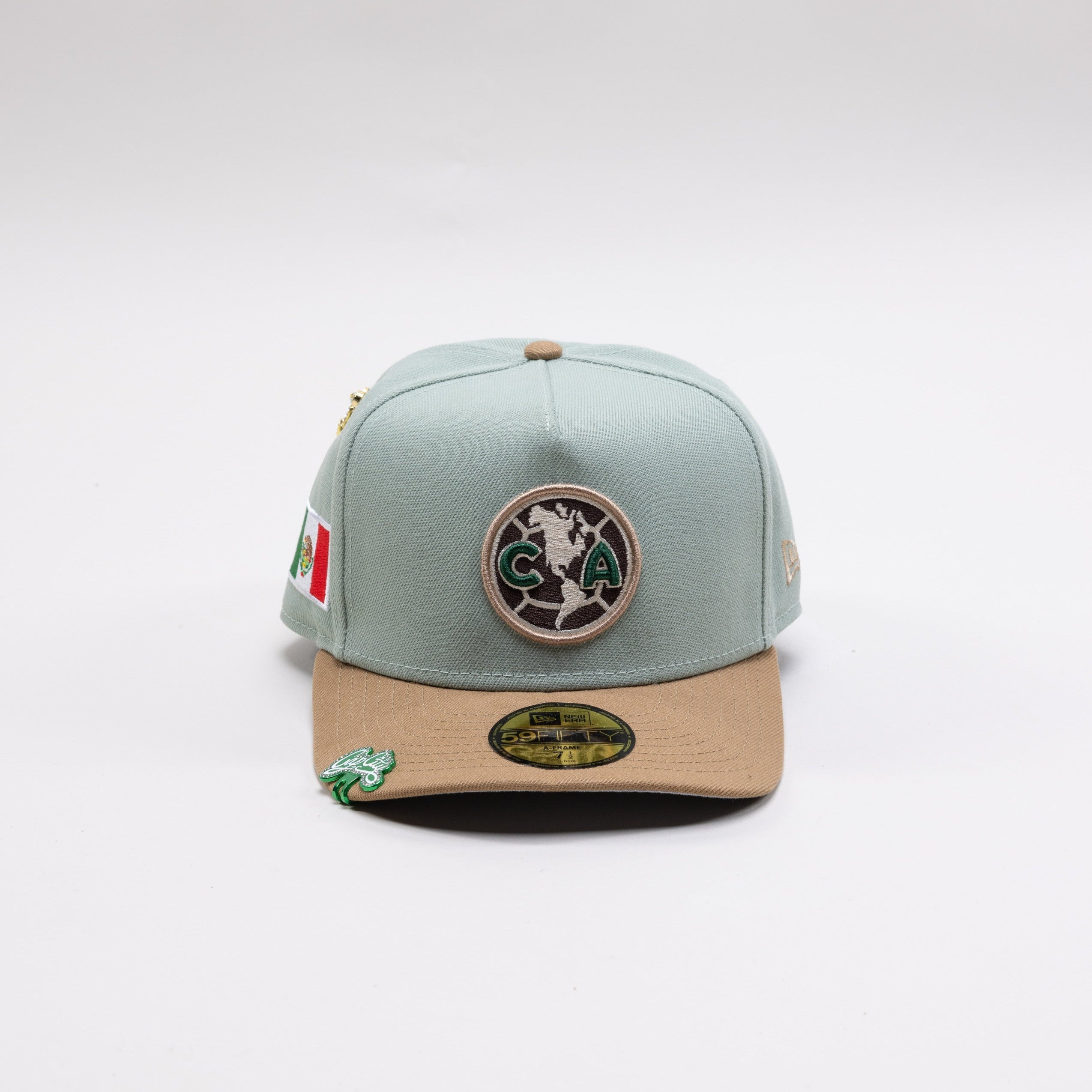NEW ERA EXCLUSIVE 59FIFTY DARK MINT/KHAKI "CLUB AMERICA" A-FRAME W/ MEXICO FLAG SIDE PATCH