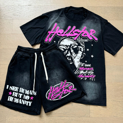 Hip Hop Retro Street Hell T-shirt Shorts Two-Piece Set